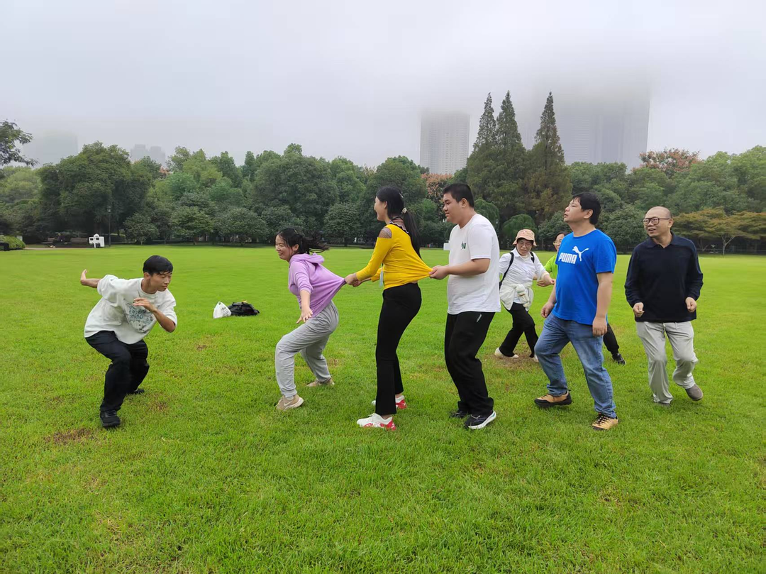 徒步环节结束后,大家在景区草坪上开启了热闹的团体游戏。“老鹰捉小鸡”的经典玩法率先点燃现场气氛,志愿者扮演“老鹰”和“鸡妈妈”,服务对象们手拉手组成“小鸡队”,在草坪上奔跑躲闪,笑声此起彼伏;随后的“丢手绢”游戏中,志愿者与服务对象围坐成圈,随着歌声传递手绢,被手绢选中的人起身表演简单的动作,无论是轻快的拍手还是可爱的转圈,都能收获全场热烈的掌声。游戏过程中,工作人员始终密切关注每位服务对象的状态,用包容与耐心引导他们参与,帮助他们在互动中感受合作的快乐,增强自信心。