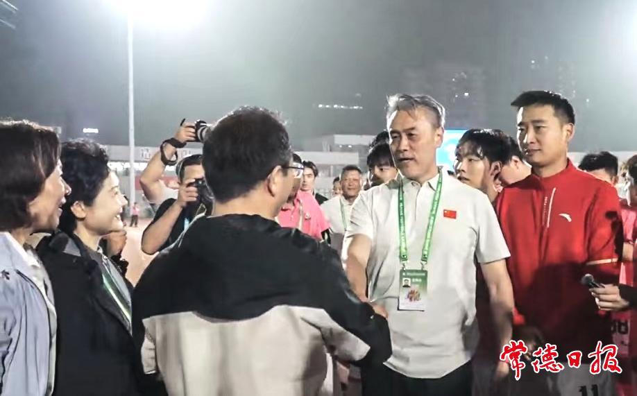 赛后,湖南省体育局党组书记熊倪,常德市委副书记、市长周振宇,常德副市长陈华等慰问了双方球员。