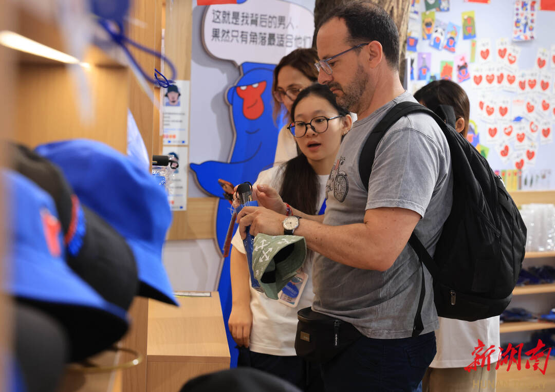 随着国庆、中秋“双节”临近,湖南张家界国家森林公园也迎来秋季旅游旺季,当地自主研发的服帽、毛绒玩偶、冰箱贴、好运盲盒等多元化的旅游文创商品也因客流量增加而旺销。近年来,当地立足本土特色,不断加大对旅游文创商品的研发、生产和销售力度,推进旅游文创商品向产业化、专业化、市场化方向发展。图为:9月27日,游客在张家界国家森林公园“马小喽”旅游文创店选购商品。 (吴勇兵摄)