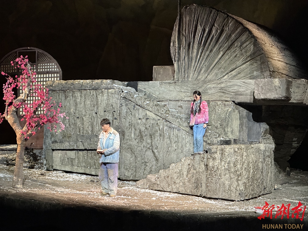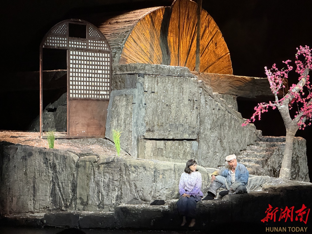 现场,舞台设计尽显黄土美学特色。直径16米的360度旋转舞台,象征着命运轮转与时光流逝。大型“石碾”装置既是农具,又暗喻“时代的压力”,同时配置山坡、窑洞等场景与地域特色道具,生动还原了陕北高原风貌。演员用陕北方言对白,穿插陕西民歌,让观众感受到黄土高原的温度与陕北文化魅力。
