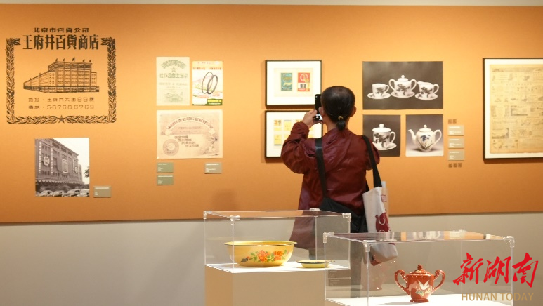 此次巡展特别注重融入湖南本土元素。展厅一隅,1959年湘潭一大桥建桥原始图纸铺陈展开,手绘标注仍清晰可辨,见证了湖南交通建设的早期探索;1950年代醴陵瓷格外亮眼。龙牌酱油不同时期商标设计稿,则直观呈现了民族工业在时代变迁中的转型历程。