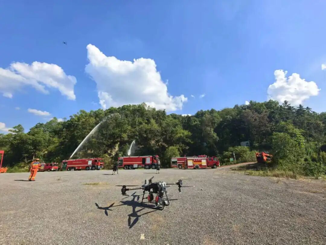 在大义山自然保护区,多科目实战如火如荼开展。以水灭火科目中,队员们分工协作,迅速选定水源,18分钟内完成2路各600米水泵架设,稳定输水5分钟;小型泵车与消防水车高效配合,完成300米接力输水。多架无人机同步升空,实时传回火情画面,为指挥提供精准数据,充分检验应急队伍在复杂场景中快速响应、协调联动、科学处置及持续作战能力。