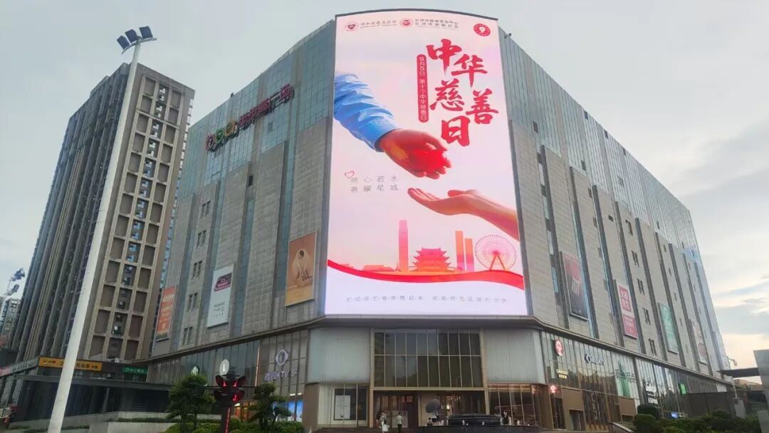 湖南省慈善总会联合长沙市慈善总会在长沙市人流量密集的大型商场户外电子屏、公交地铁移动电视等平台播出中华慈善日主题宣传海报,将慈善文化融入市民出行场景。