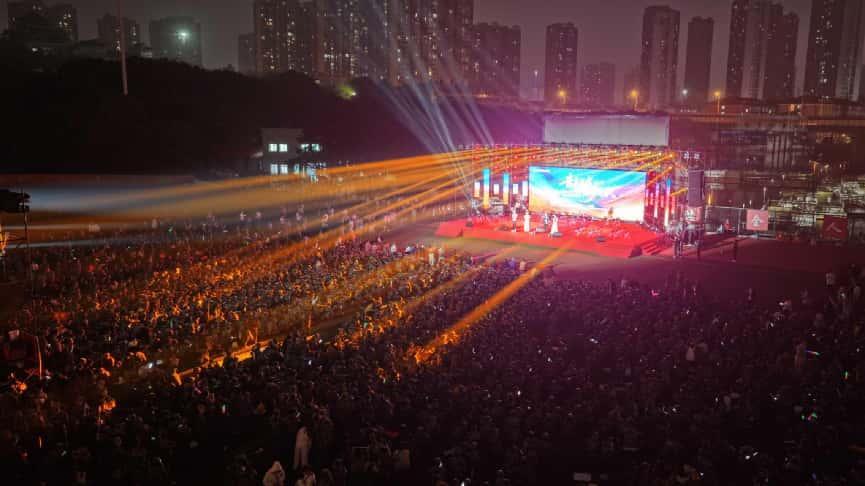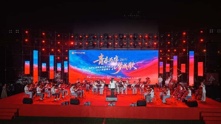 9月26日晚,长沙民政职业技术学院风雨足球场内灯火璀璨、青春涌动。在热情似火的学院拉歌预热后,一场以“青春为序,汇梦成歌”为主题的2025迎新晚会盛大启幕。长沙民政职院党委委员、副校长张国辉,学工部、团委、保卫部等部门负责人,各二级学院党总支副书记出席活动。晚会由长沙民政职院校团委主办,金茉莉艺术团承办,融合了现代科技艺术与深厚文化底蕴,为近4000名新生呈现了一场精彩纷呈的视听盛宴。