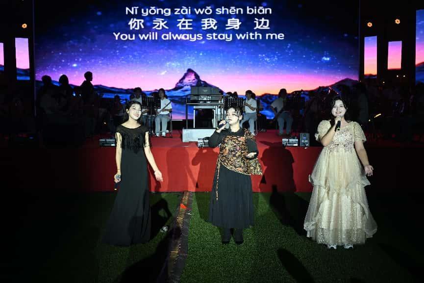 晚会尾声,由印度尼西亚留学生许芳玉与校声乐队共同演绎的《如愿》,以温暖声线唱出对未来的美好期许,搭建起中外学子情感共鸣的桥梁。