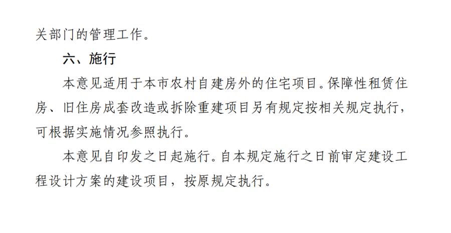 据悉,新规自9月26日起施行,主要适用于上海农村自建房外的住宅项目。保障性租赁住房、旧住房成套改造或拆除重建项目另有规定按相关规定执行。