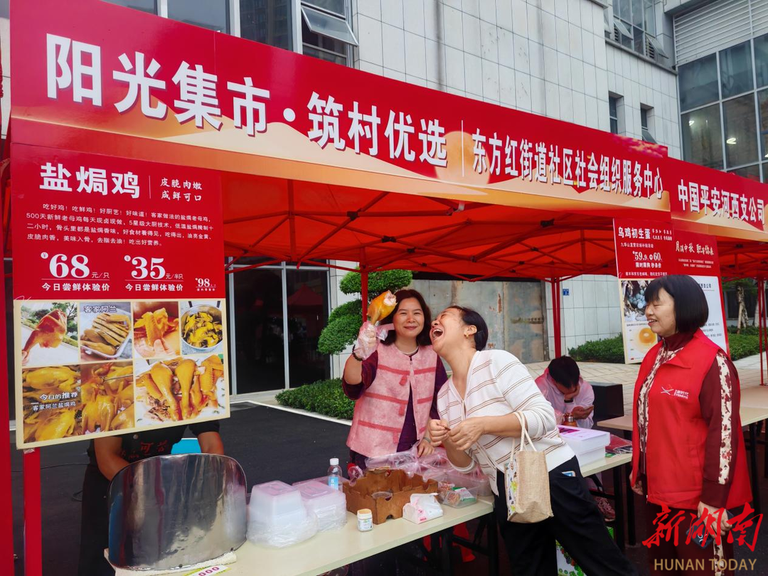 活动现场特别设置了农产品展销区,汇聚了大塘村的土鸡蛋、有机蔬菜以及胜和村的梨子、黄桃等绿色农产品。这些产品凭借新鲜、优质的特点,深受居民喜爱,展位前很快排起长队。此举不仅为城市家庭餐桌增添了乡土风味,也为结对村庄的特色农产品拓宽了销路,有效促进了城乡之间的资源流动与情感交融,共同绘就出一幅城乡互助、携手发展的和谐画卷。
