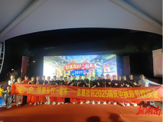 湖南日报·新湖南客户端9月28日讯(通讯员 龚维维)金风送爽,桂香四溢。国庆、中秋“双节”来临之际,为营造喜庆、祥和的社区节日氛围,9月27日晚,湖南湘江新区麓谷街道金雅社区在肖河法治广场精心举办“邻里友好一起来”国庆·中秋主题欢庆晚会,社区居民欢聚一堂,共赴一场兼具文化韵味与邻里温情的节日盛宴。