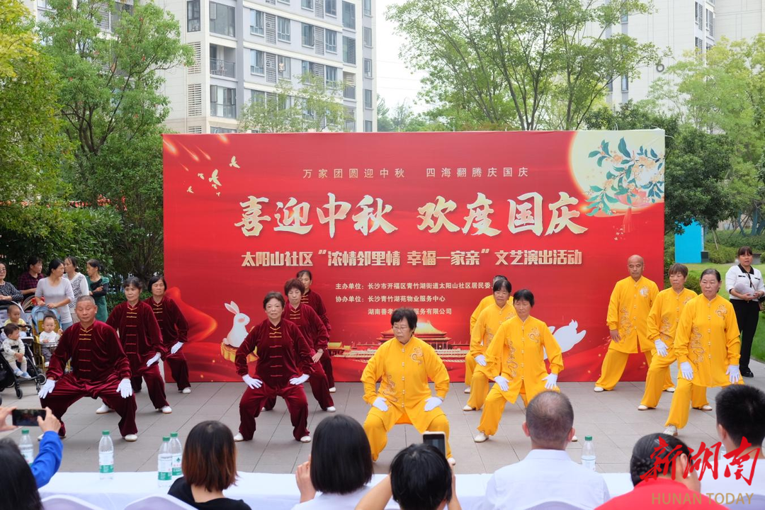 新湖南客户端9月28日讯(通讯员 胡蓉)9月28日上午,长沙市开福区青竹湖街道太阳山社区在卓越青竹湖小区文化广场举办“浓情邻里情 幸福一家亲”文艺演出活动,将节日祝福与红色情怀融入精彩节目。整场演出由居民自编自导自演,既接地气又聚人气,将爱国情、民族情融入艺术表达。