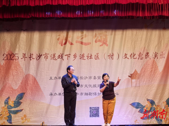 湖南日报·新湖南客户端9月28日讯(通讯员 杨凯 谢博)国庆、中秋双节将至,为营造浓厚的节日氛围,9月27日晚,湖南湘江新区梅溪湖街道云溪湾社区特邀长沙市湘剧传承保护中心走进社区,为居民呈上一场近3小时的精彩文艺大餐。舞蹈的灵动、歌曲的深情、小品的诙谐、戏曲杂耍的巧妙、花鼓戏的醇厚、湘剧的典雅……丰富多样的节目类型,满足了不同年龄层居民的文化审美需求。