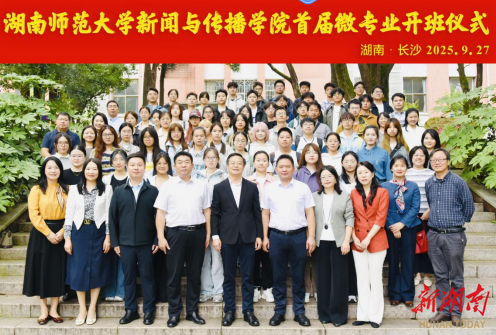 湖南日报·新湖南客户端9月28日讯(通讯员 贺婕 摄影 马迅)9月27日上午,湖南师范大学新闻与传播学院首届“全媒体国际传播”、“AI+短视频创作与运营”微专业在书山论坛开班。微专业教学团队以及全体学生参加开班仪式。湖南国际传播中心主任刘骄、省广播电视局网络视听节目管理处处长罗正茂、中共长沙市委宣传部对外推广处处长刘爱梅、学校教务处处长银海强、教师教育学院院长蔡颂,院领导王胜章、张小春出席开班仪式。副院长李琦主持仪式。据悉,此次开班的“全媒体国际传播”微专业与“AI+短视频创作与运营”微专业均为省内首创。