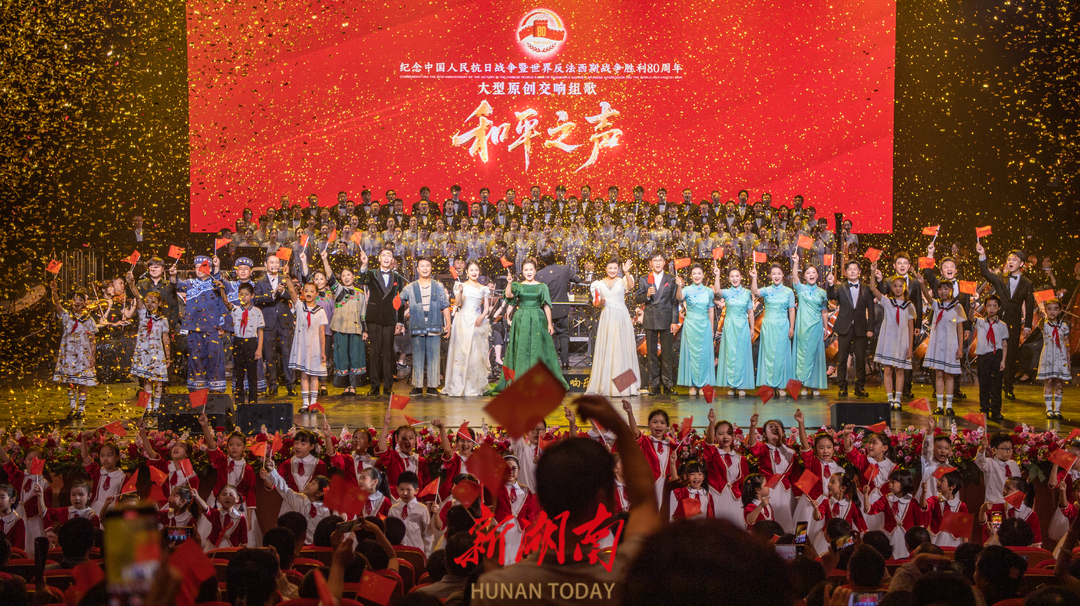 湖南日报·新湖南客户端9月28日讯(记者 龙文泱 摄影记者 傅聪 通讯员 张英 李佳蔚)9月28日晚,大型原创交响组歌《和平之声》在湖南大剧院首演。