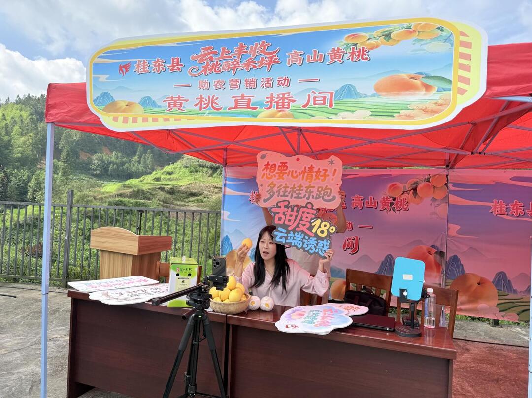 活动中,党员志愿者主动上门帮桃农选果、打包;开设直播技巧培训课,手把手教村民直播带货;还邀请知名三农主播“谷哥”助阵,金黄的黄桃配上云雾缭绕的梯田美景,吸引百万网友在线围观。