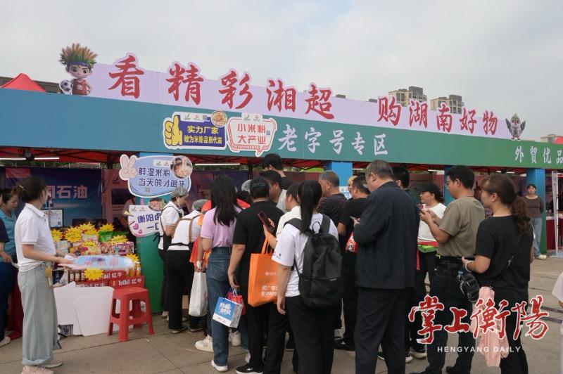 当晚“湘超”赛事期间,市商务局牵头组织25家衡阳本土企业开展“看精彩湘超·购衡阳好物”展销活动,品类覆盖老字号、湖南好酒、外贸优品、文创产品,各企业结合自身特色推出福利与优惠,现场热度持续攀升。