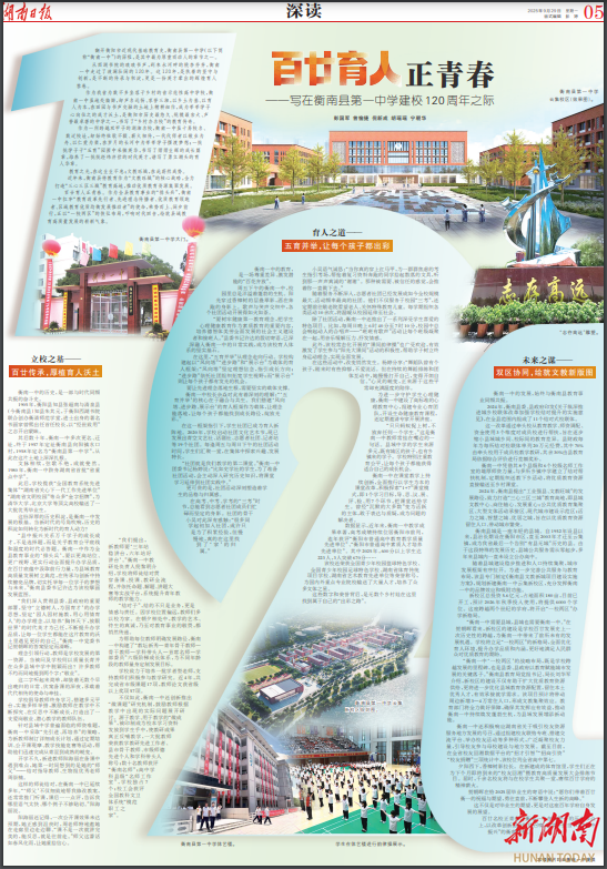 从西湖书院的琅琅书声,到耒水河畔的桃李芬芳,衡南一中走过了波澜壮阔的120年。这120年,是执着的坚守与创新,是不断的传承与积淀,更是一份英才辈出的辉煌育人答卷。
