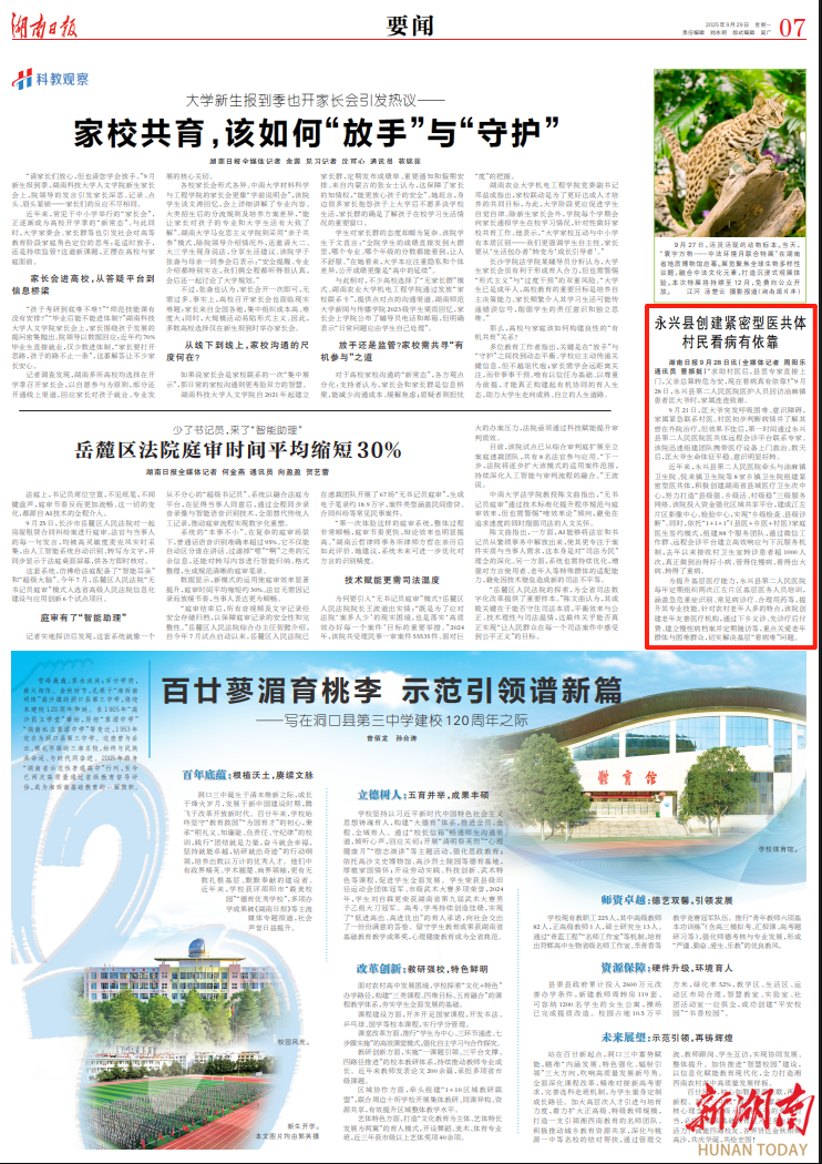 湖南日报9月28日讯(全媒体记者 周阳乐 通讯员 曹振挺)“求助村医后,县里专家直接上门,父亲总算转危为安,现在看病真有依靠!”9月28日,永兴县第二人民医院医护人员回访油麻镇患者匡大爷时,家属连连致谢。