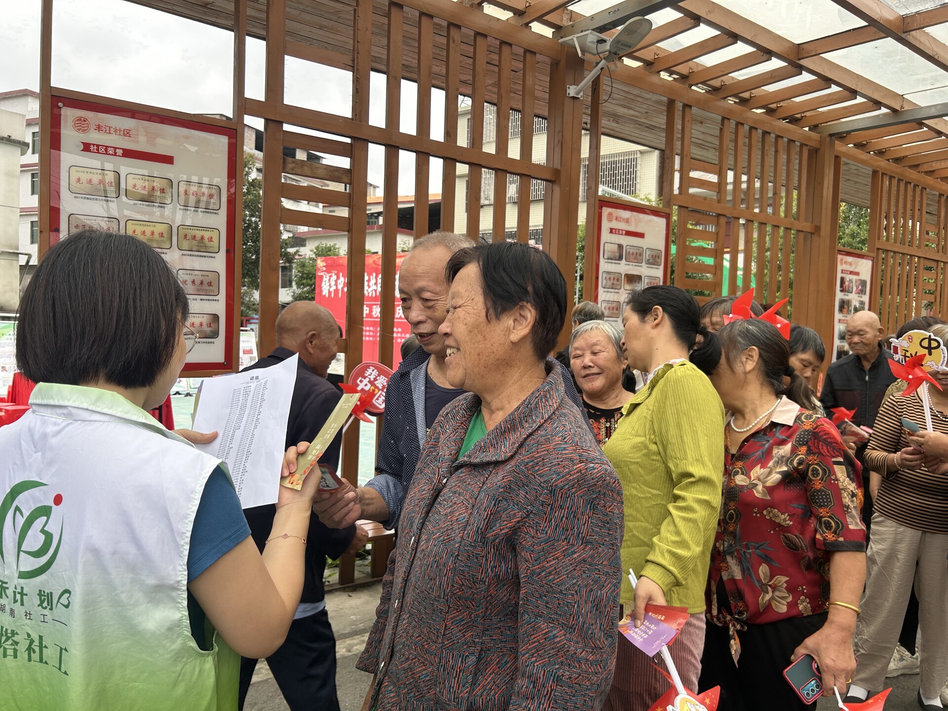 活动现场,社工们还精心准备了“党史知识小课堂”“中华民族发展史问答”等互动环节,居民们边玩边学,抢答声、掌声此起彼伏。社区居民李阿姨笑着说:“猜灯谜学了传统文化,答题还涨了知识,今天真是带着脑袋和嘴巴一起来过节!”