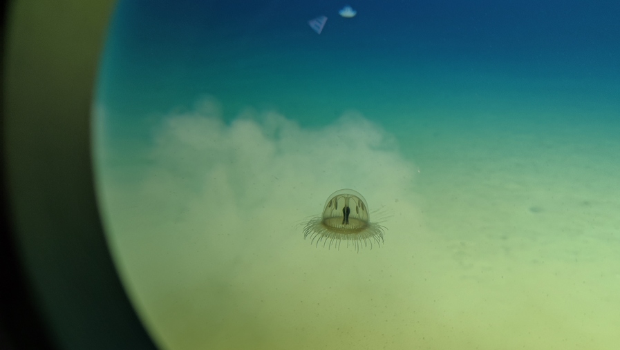 仔细一看,澄澈的海水中,无数的水母、小虾、浮游动物在欢快地游动。她所在深潜科考团队成员用手机在舱内拍下了这一刻,而这张照片也随着他们的论文登上了国际顶级期刊《细胞》杂志的封面。