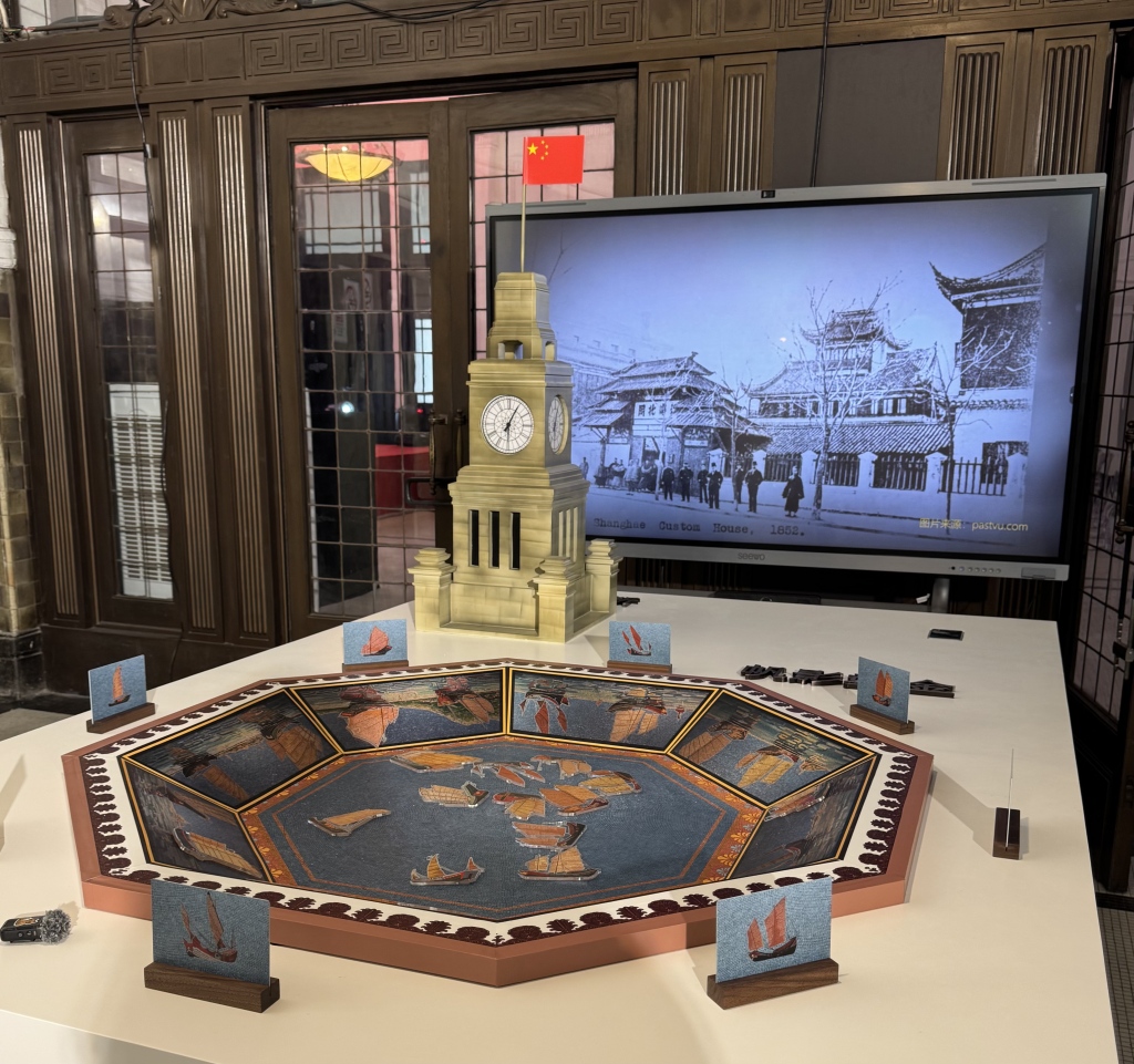 海关大楼一层大厅中央的白玉兰装置与钟楼旗杆位置对应,是20世纪20年代上海地理原点坐标,也是本次活动的“时空原点”。