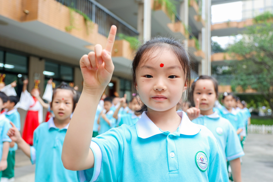 仪式在肃穆的氛围中拉开帷幕。全体学子整肃衣冠,面向先贤孔子行三拜之礼,表达对中华文明、授业恩师与天地万物的崇高敬意。随后进行的“朱砂开智”环节,老师们亲手为学子点上一枚鲜红的“聪明记”,寓意点亮心智、启迪智慧。