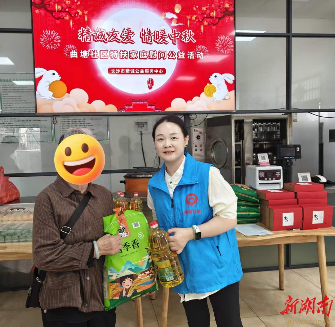 中秋月圆,情暖人间。9月28日上午,在2025年中秋佳节即将来临之际,精诚公益在长沙市雨花区树木岭路曲塘社区老年食堂举办“精诚友爱·情暖中秋”慰问活动,为辖区20户特扶家庭送上了节日的问候与诚挚的祝福。