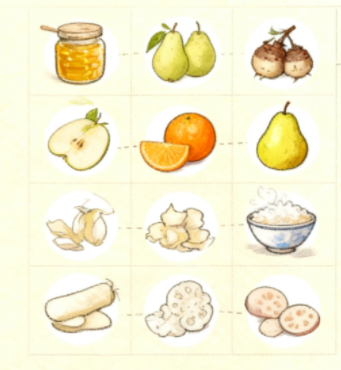应多食用酸甜食物,因为“酸甘化阴”。如蜂蜜、荸荠、梨、橙子、菠萝、柿子、石榴、山楂、百合、银耳、莲藕、食粥等,可生津润燥,减少秋燥的发生。