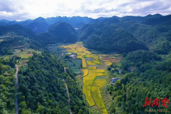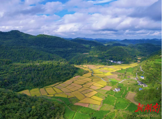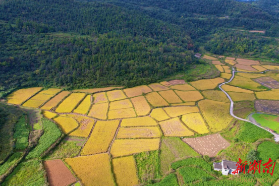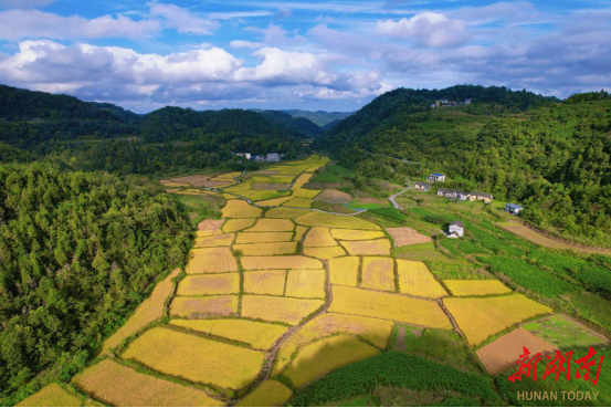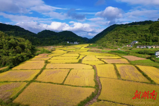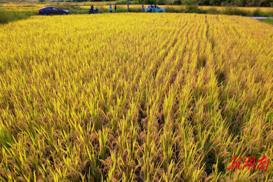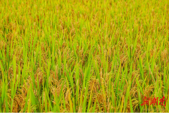 新湖南客户端9月29日讯(通讯员 黄文渊 吴东林 谭宇 王怡婧)近日,走进湘西土家族苗族自治州凤凰县吉信镇高塘村的苗寨田畴间,300亩高山优质水稻褪去青衫、换上金袍,沉甸甸的稻穗在微风中轻轻摇曳,掀起层层金色浪涛,远远望去,仿佛给起伏的山地披上了一层璀璨的“金纱”,空气中弥漫着清甜的稻花香,一幅喜人的丰收画卷正徐徐展开。