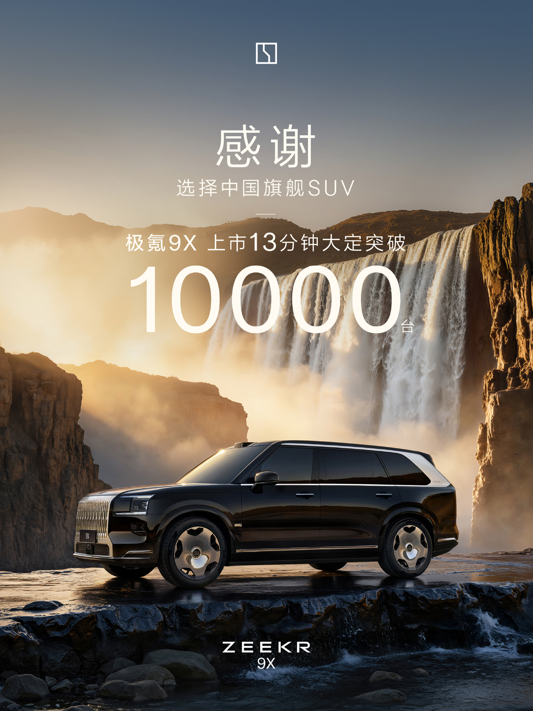 新湖南客户端9月29日讯(记者 何尚武)刚刚,中国新一代豪华旗舰极氪9X正式上市,13分钟,大定量破万台,为中国自主品牌进军全球高端豪华市场注入强劲信心。作为国内首款全栈900V高压混动架构的全尺寸SUV,极氪9X具备代际领先的产品优势。共推出Max版、Ultra版、Hyper版、曜黑版四个版型,官方售价46.59万元至59.99万元起,超级置换权益后限时售价45.59万元至58.99万元起,主销版型已突破传统海外豪华品牌价格区间。