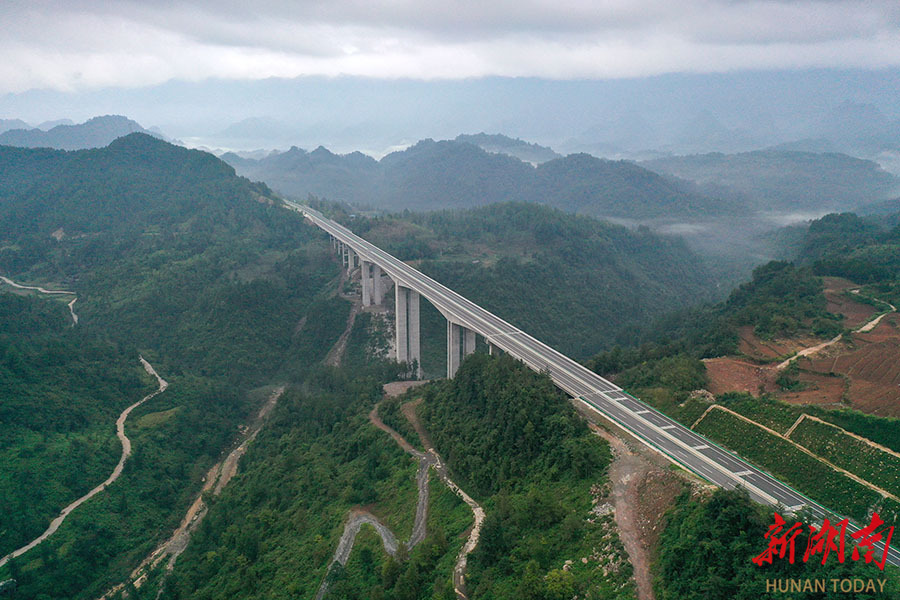 9月29日,桑(植)龙(山)高速公路龙山县湾档河大桥。当天,桑龙高速公路正式通车。该路段全长61.5公里,双向四车道,通车后两地通行时间由2.5小时缩短至40分钟。作为G5515国家高速的重要组成部分,桑龙高速串联常张、杭瑞等多条高速,打通湘鄂渝省际通道,将显著提升区域交通互联互通水平,对促进湘西北经济发展具有重要意义。 曾祥辉 摄(湖南图片库)