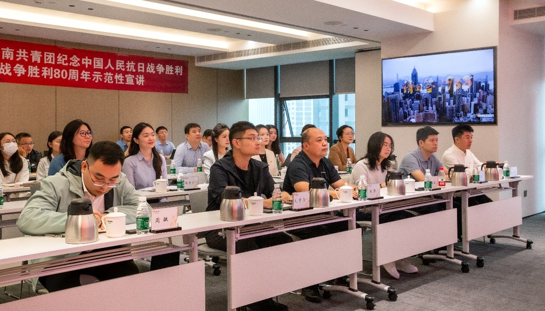 9月23日,由共青团湖南省委主办的“理XIANG青年”湖南省共青团纪念中国人民抗日战争胜利暨世界反法西斯战争胜利80周年示范性宣讲活动,在华润置地长沙公司举行。活动以微影片展映与主题宣讲相结合的形式,引领青年一代重温抗战岁月,凝聚奋进力量。团湖南省委、团长沙市委和团开福区委相关负责同志、华润置地在长相关单位的党员、团员青年代表70余人参加。