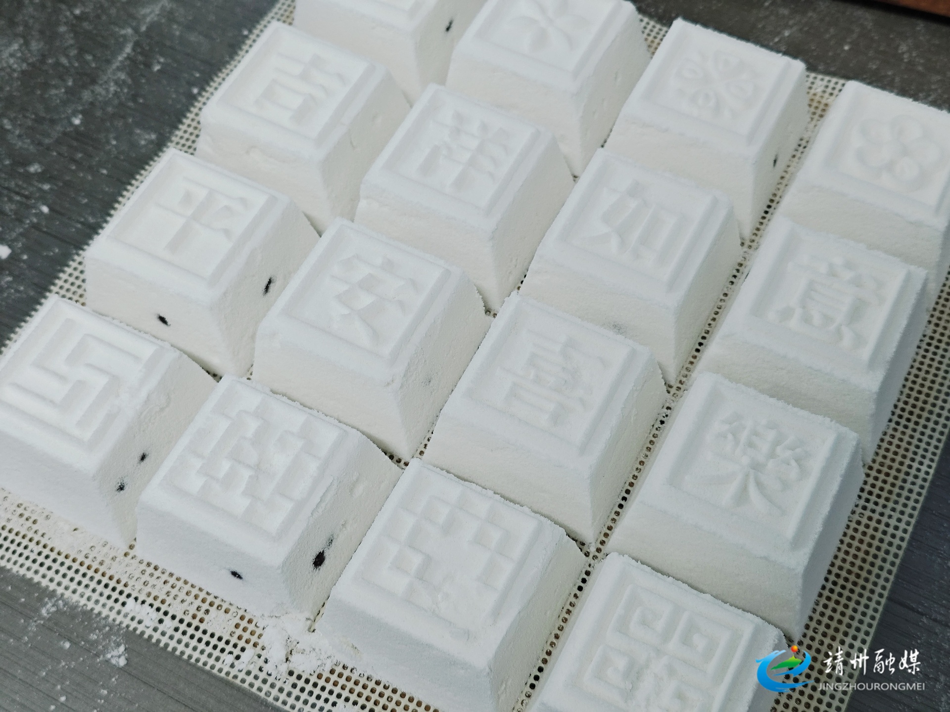 ▲红豆味茯苓糕半成品(蒲湘萍 摄)