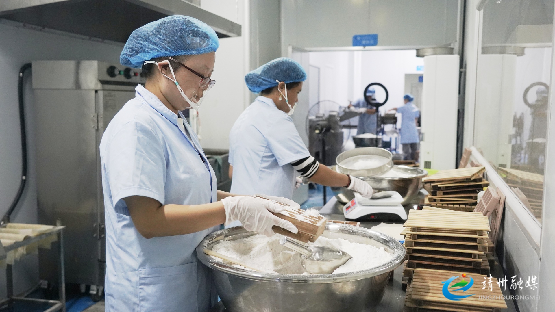 ▲员工有条不紊制作茯苓糕(蒲湘萍 摄)