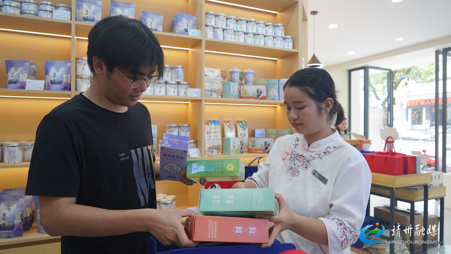 ▲顾客购买茯苓产品伴手礼(蒲湘萍 摄)