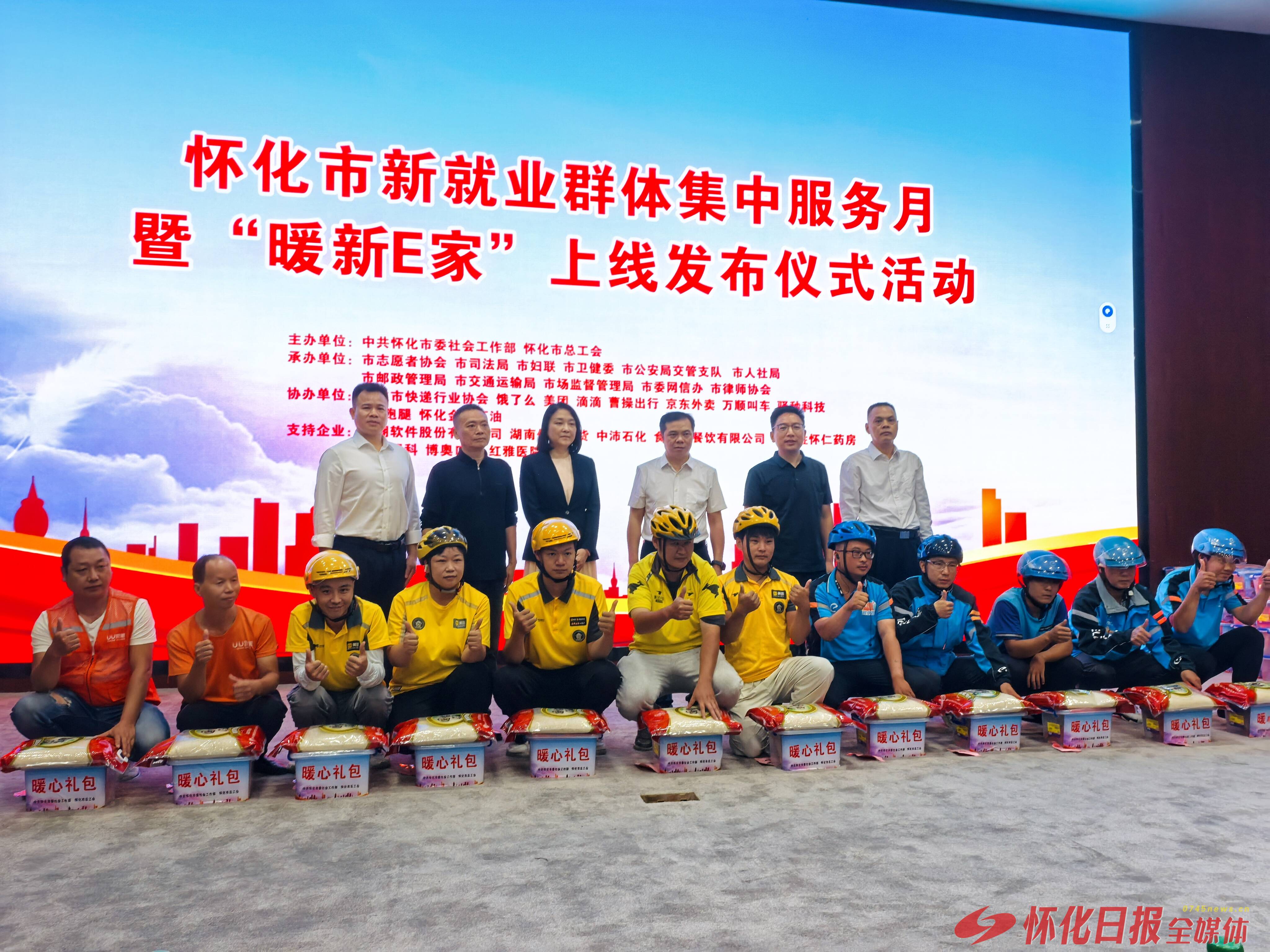 当天,怀化市新就业群体集中服务月同步启动,包括“闪送温暖·驿路守护”工会驿站服务体验日、“工会相伴·健康暖新”市总工会关爱行动、“律护新业,法暖人心—免费法律咨询服务活动”“油惠暖心·一路相伴”暖新驿站服务活动、“食分暖新·感恩同行”——食为蒸“暖新营养伙伴”计划发布仪式等13项活动,为新就业群体送去实打实的关爱。