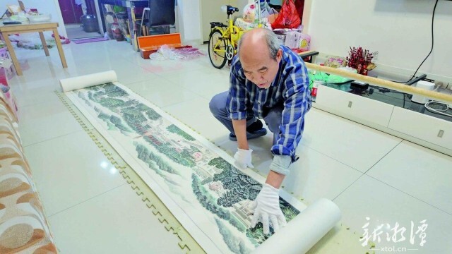 肖更应向我们展示23米山水长卷《韶山图》。 (廖艳霞 摄)
