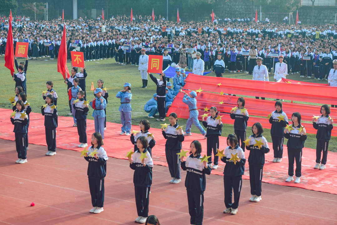 新湖南客户端9月30日讯(通讯员 单志仟)9月28日上午,长郡梅溪湖中学4700余师生齐聚学校绿茵场,开启该校第十四届体育节暨田径运动会,共同见证这场集竞技、文化与青春风采于一体的体育盛会。该校党委书记杨国良、校长何俊、纪委书记罗莺莺、副校长唐頔、全体中层干部及家长代表出席开幕式。