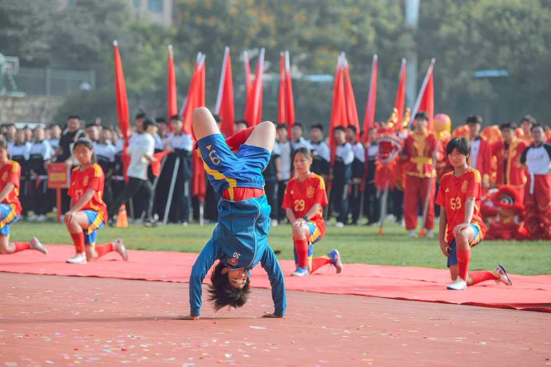 此外,还有该校女足、健美操、田径、游泳、武术队伍惊艳亮相,同学们意气风发、英姿飒爽,一个个高难度的专业动作展现了极高的专业素养,将开幕式推向高潮。