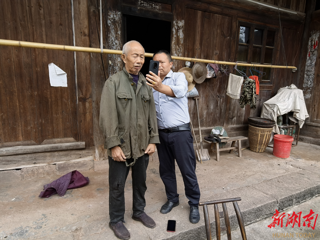 图1 杨家潭村支部书记邓明星为村民范吉尧办理扫脸网签