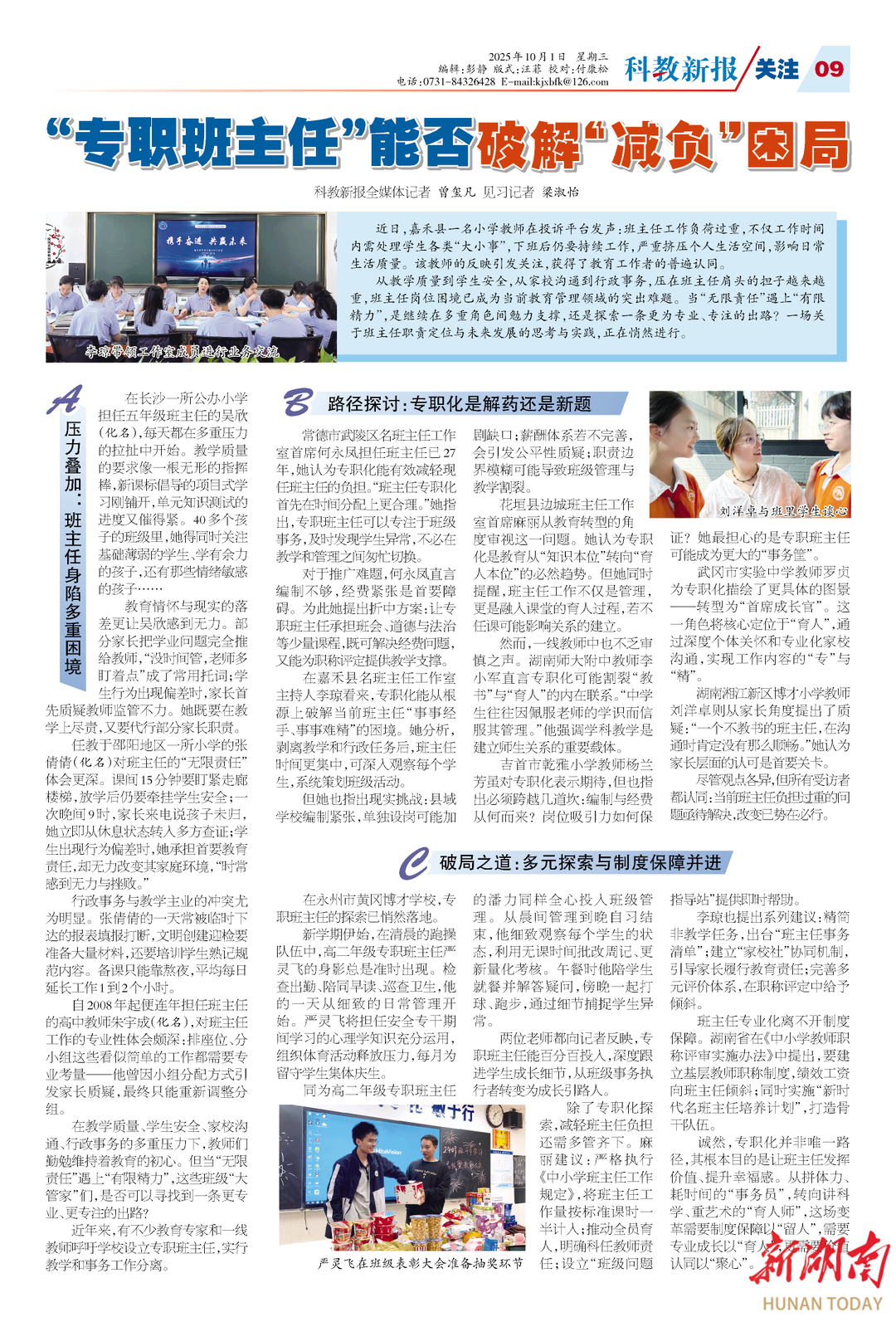 武冈市实验中学教师罗贞为专职化描绘了更具体的图景——转型为“首席成长官”。这一角色将核心定位于“育人”,通过深度个体关怀和专业化家校沟通,实现工作内容的“专”与“精”。
