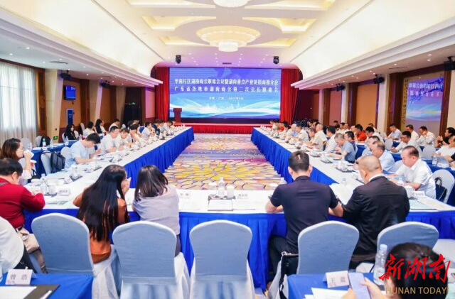在华南片区湖南商会联席会议上,湖南省生物医药及医疗器械产业链、长沙市、郴州市、张家界市分别作招商推介。广东、广西、海南、深圳、广州等地湖南商会主要负责人和湘商代表围绕“湘商回归”、助力湖南高质量发展等交流发言。