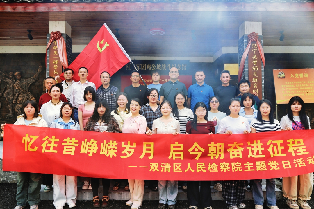 近日,双清区人民检察院干警来到绥宁瓦屋塘镇皮叶村红二军团鸡公坡战斗纪念馆开展“忆往昔峥嵘岁月 启今朝奋进征程”主题党日活动,弘扬革命精神,厚植爱国情怀。