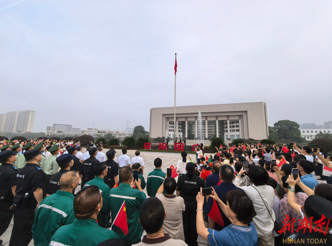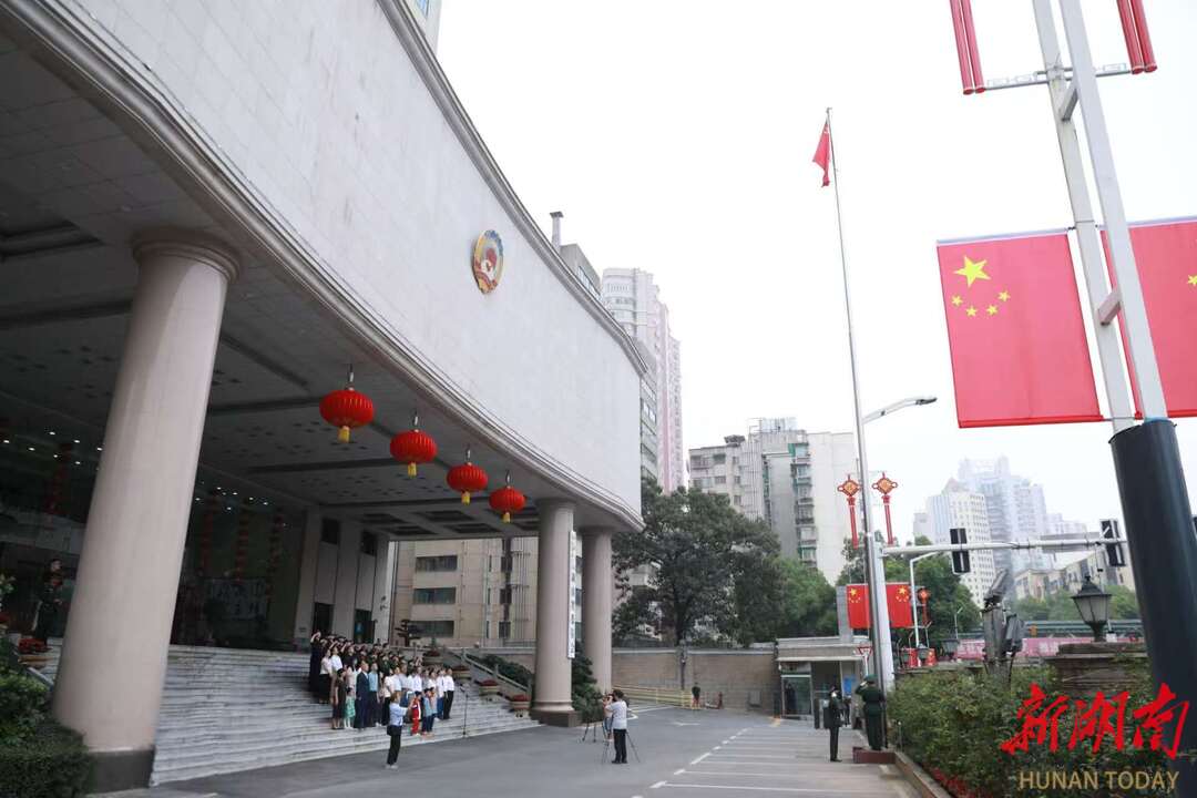 (10月1日,省政府机关举行庄严的升国旗仪式。湖南日报全媒体记者 黄晗 摄)