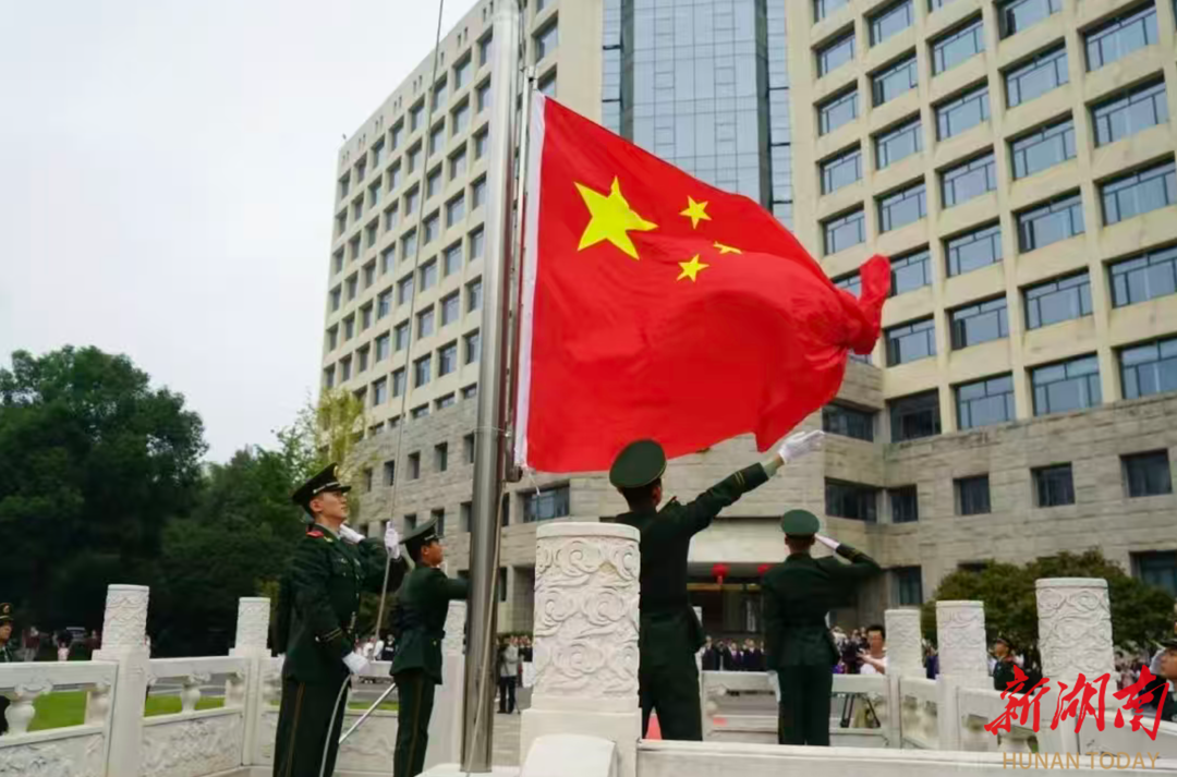 (10月1日,省委举行庄严的升国旗仪式,庆祝中华人民共和国成立76周年。湖南日报全媒体记者 辜鹏博 摄)