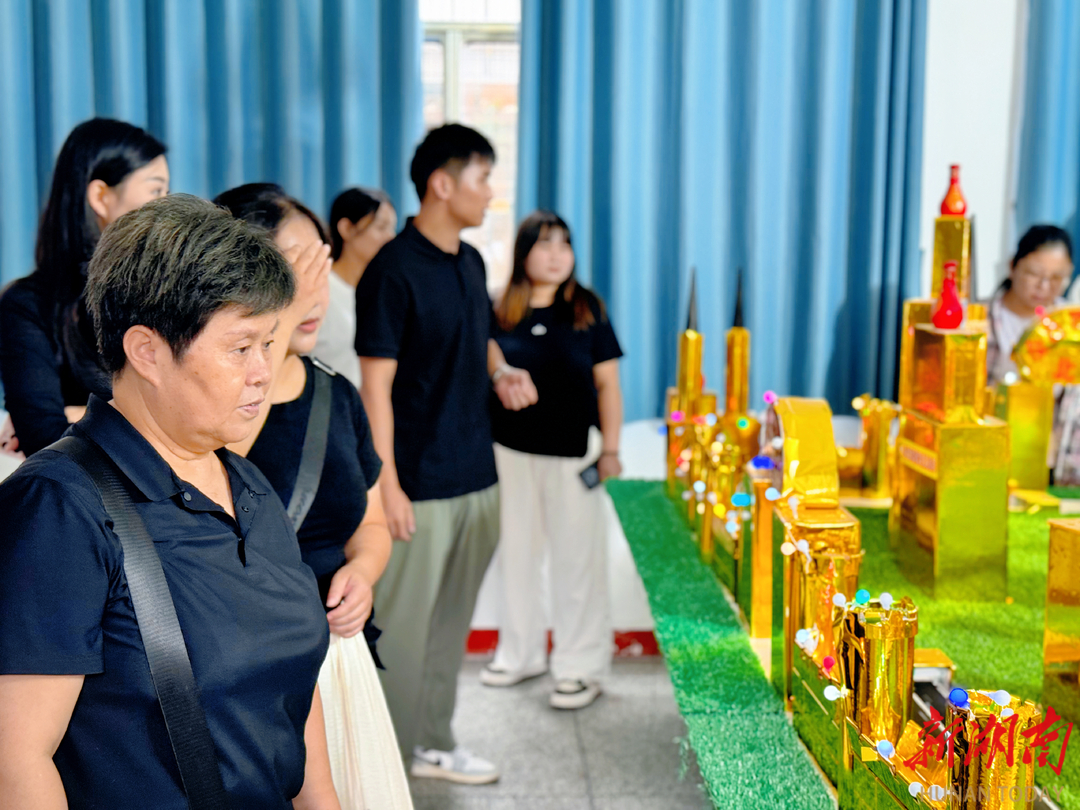 真正的巧思,在于“低成本,高创意”的科创实践。随着杨志老师的引导,一座由废弃烟花筒制作的“金色城堡”吸引了家长们的目光。它是学生对未来城市的畅想,内置了先进的人体感应和声控系统,当有人走近时,它会自动感应并发出欢迎词,同时展示出模拟的防御功能,让孩子们在动手实践中初步体验人工智能与自动化的魅力。“县城孩子接触前沿科技的机会有限,我们用废旧材料激发兴趣,同时融合环保理念。”指导老师杨志的一席话,赢得了家长们的赞许。