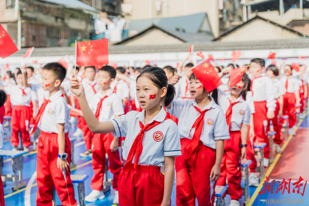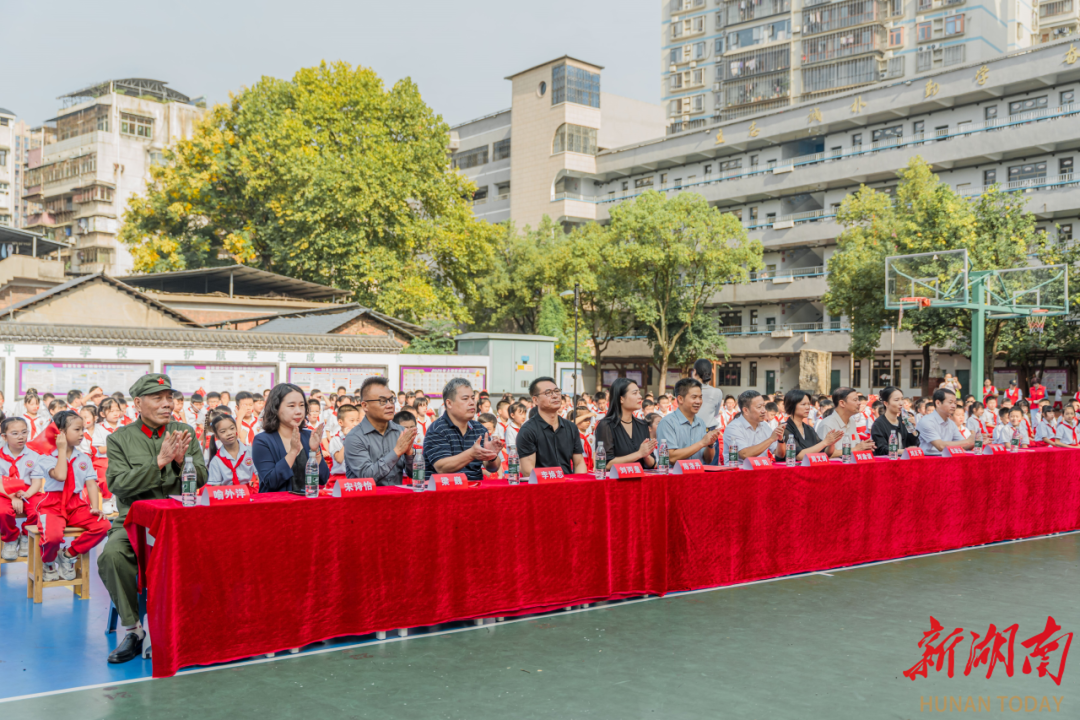 湖南法治报·新湖南客户端讯(通讯员 邓晨)“我们是共产主义接班人,继承革命先辈的光荣传统……”9月29日上午,激昂的队歌在郴州市第九完小上空回荡。一场由郴州市委宣传部、郴州市教育局、共青团郴州市委、郴州市妇女联合会、郴州市关工委主办,北湖区委宣传部、北湖区教育局、共青团北湖区委、北湖区妇联、北湖区关工委承办,郴州市第九完小协办的“传承红色基因 向国旗敬礼”主题活动在此举行,为新中国成立76周年献上了一份特殊的贺礼。