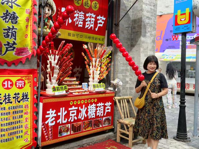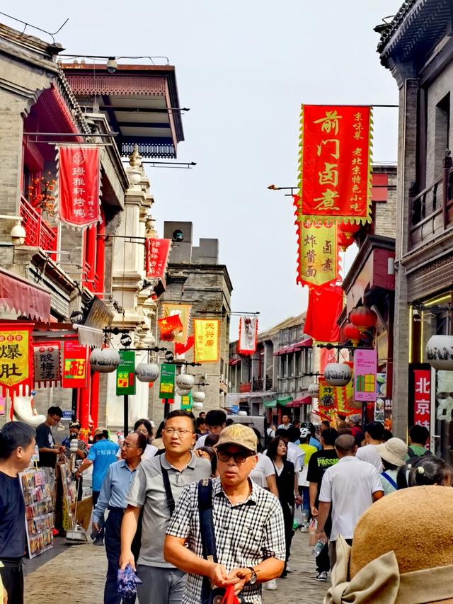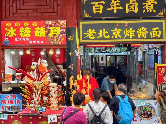 10月1日是国庆中秋假期首日,北京前门大街游客如潮。众多美食小店门庭若市,热闹红火。