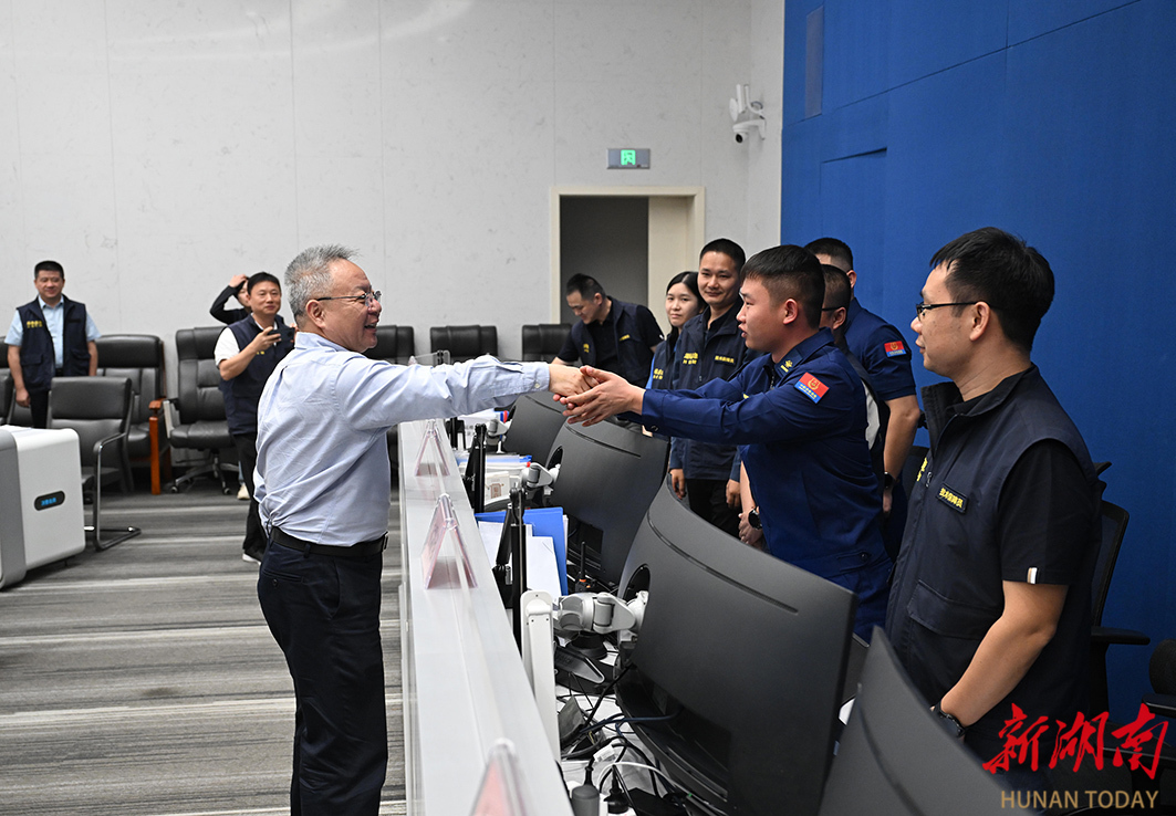 来到省应急指挥中心,沈晓明察看全省大流量景区、人员密集场所、交通枢纽运行情况,听取社会治安、道路交通、旅游市场服务保障等情况汇报。他强调,要把严防各类风险隐患作为重要任务,抓细抓实安全生产各项工作,坚决守牢安全底线;要加强旅游市场管理,强化服务保障,进一步擦亮湖南文旅品牌。要严格值班值守,确保信息畅通及时和社会安定有序。