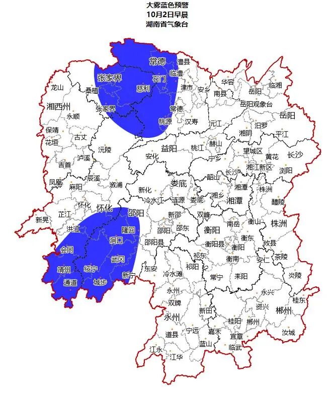 湖南省气象台10月01日16时发布大雾蓝色预警: