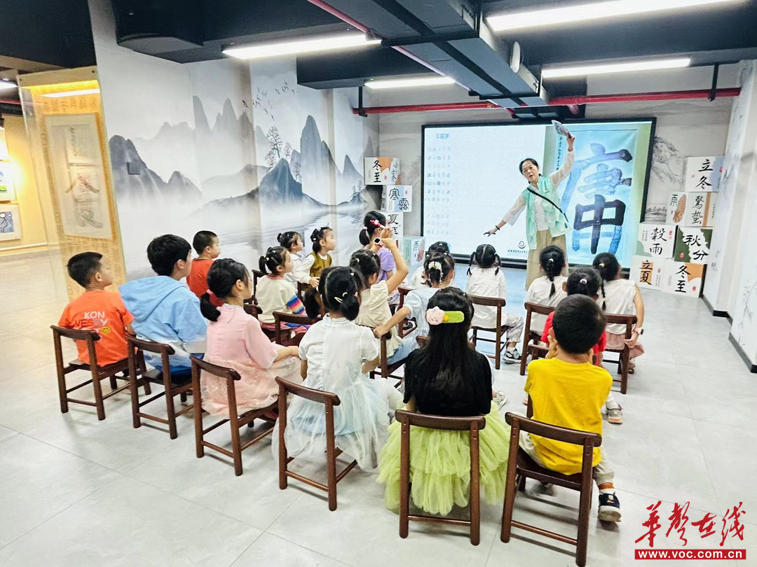 “怒发冲冠,凭栏处、潇潇雨歇……”“诗词小萌娃”课堂上,孩子们跟着老师逐句朗诵《满江红·写怀》,观看动画片了解岳飞的故事,并通过“角色扮演”读懂词句里的壮志豪情。
