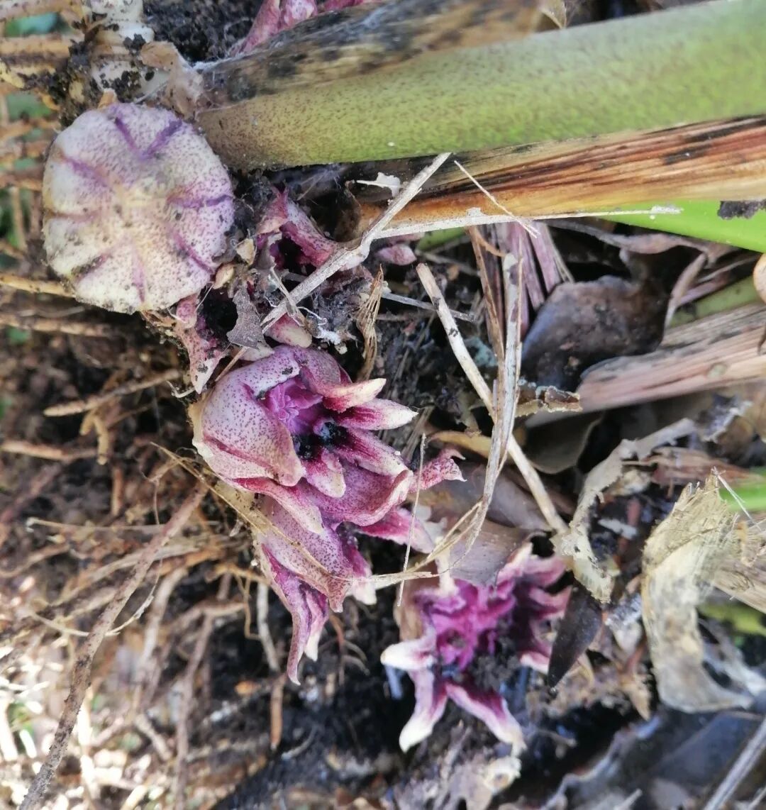 长出了长花葶的蜘蛛抱蛋(Aspidistra elatior)或许因为花朵像蜘蛛抱着白色的蛋而得名。花朵应该开在地面上。